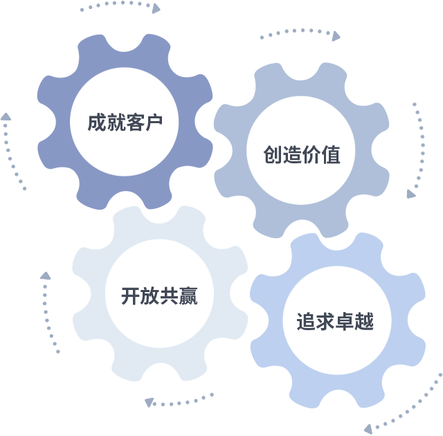 成就客户是一切决策的出发点,创造价值是衡量所有工作的标准,追求卓越是必发集团做事做人的态度,开放共赢是必发集团的格局也是最终的结果。价值观的齿轮环环相扣,推动着组织里的每个人不断向前。